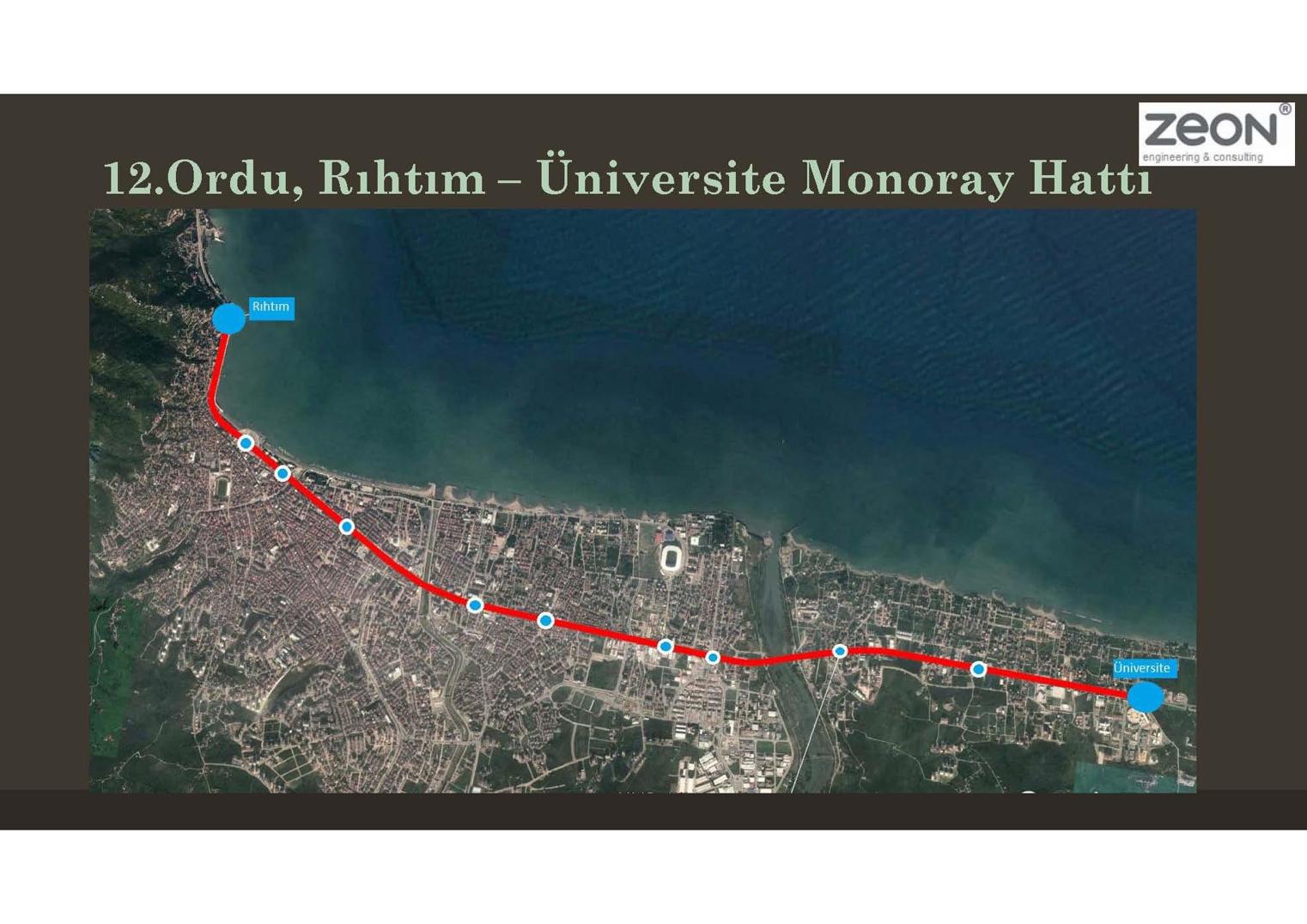 Project Description: Ordu Port – Ordu Universty Monorail line is 9.25 km. Project comprises of 11 stations, total tour time 48 minute, Operation & Maintenance Center and Depot Area.